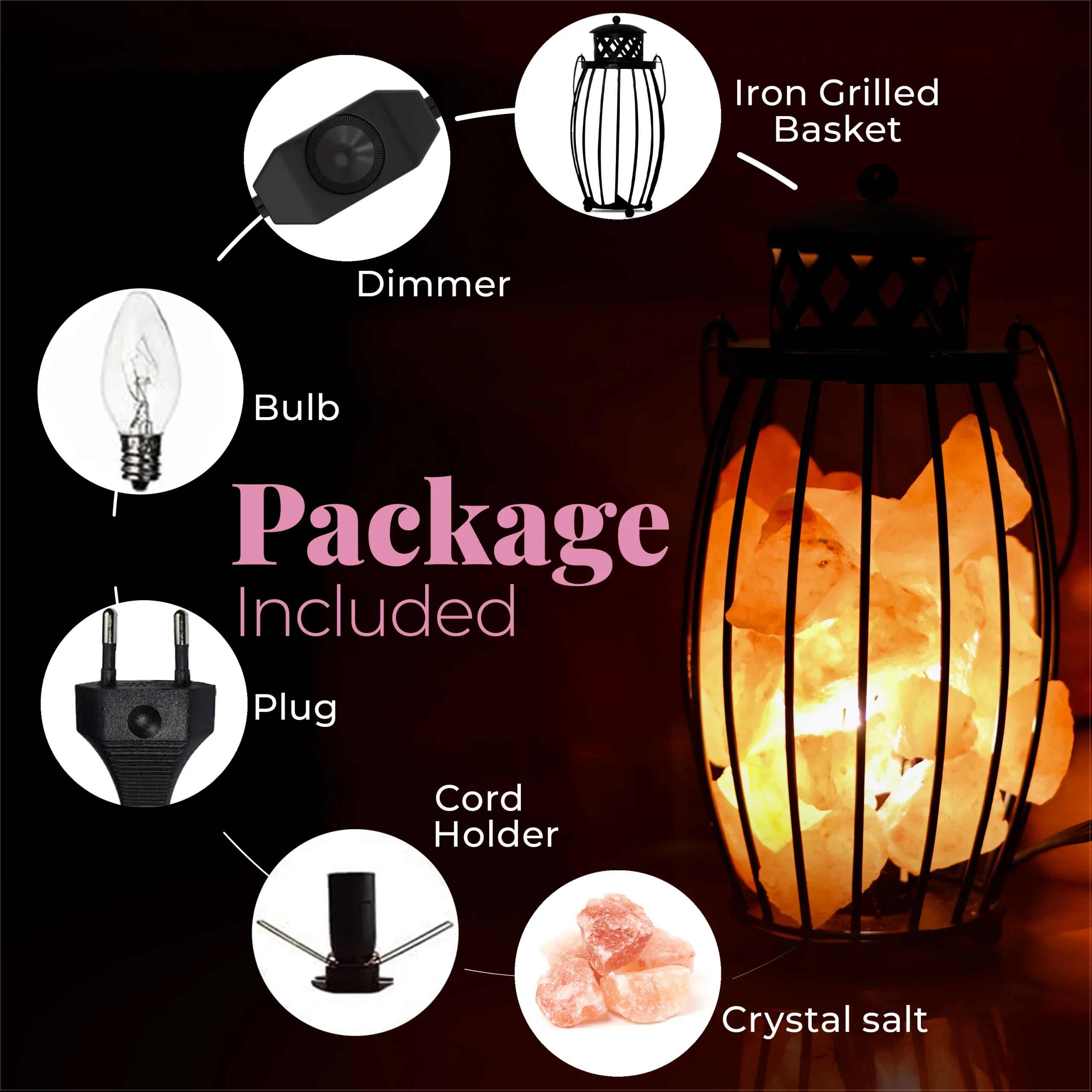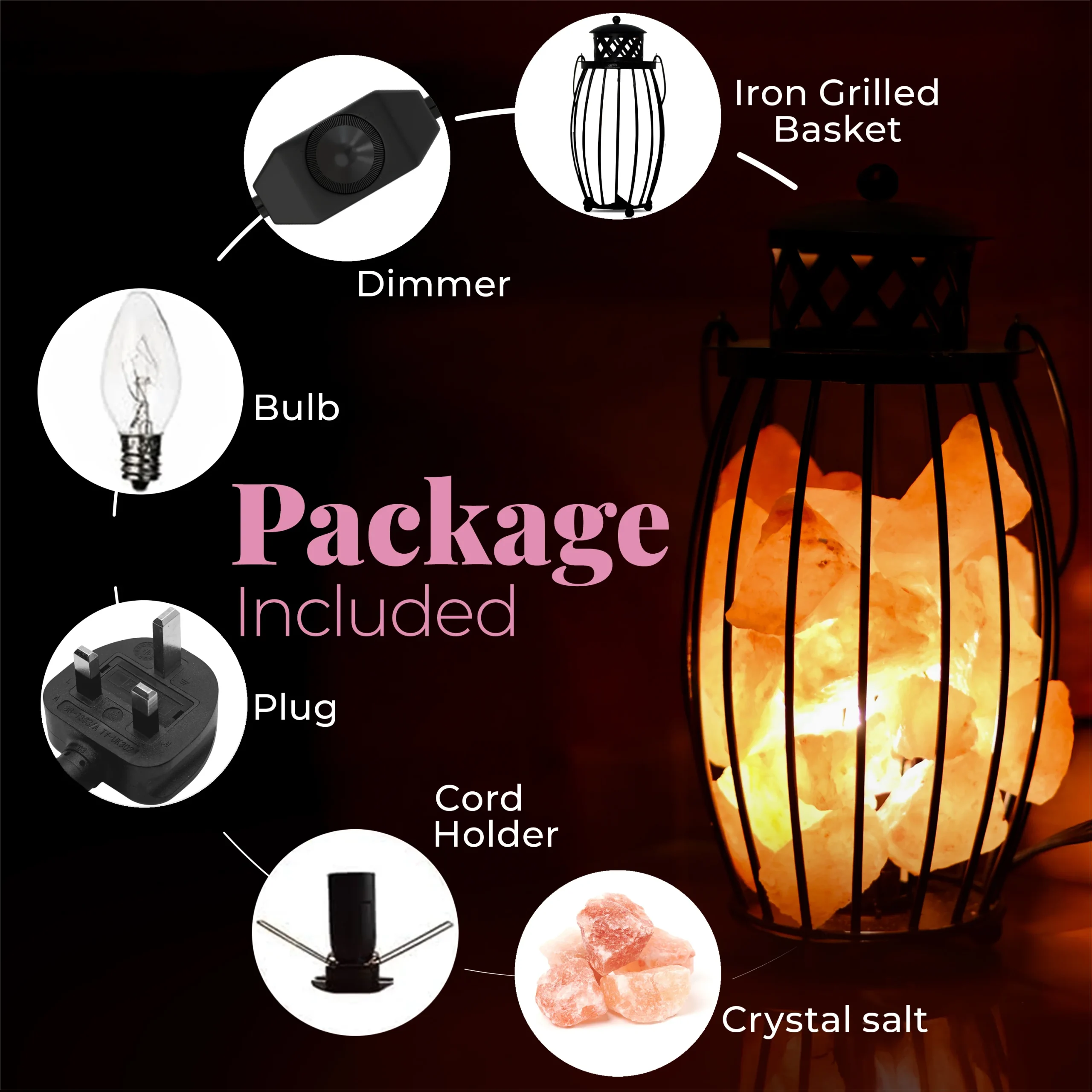 - Material: Iron Basket, Salt Crystal